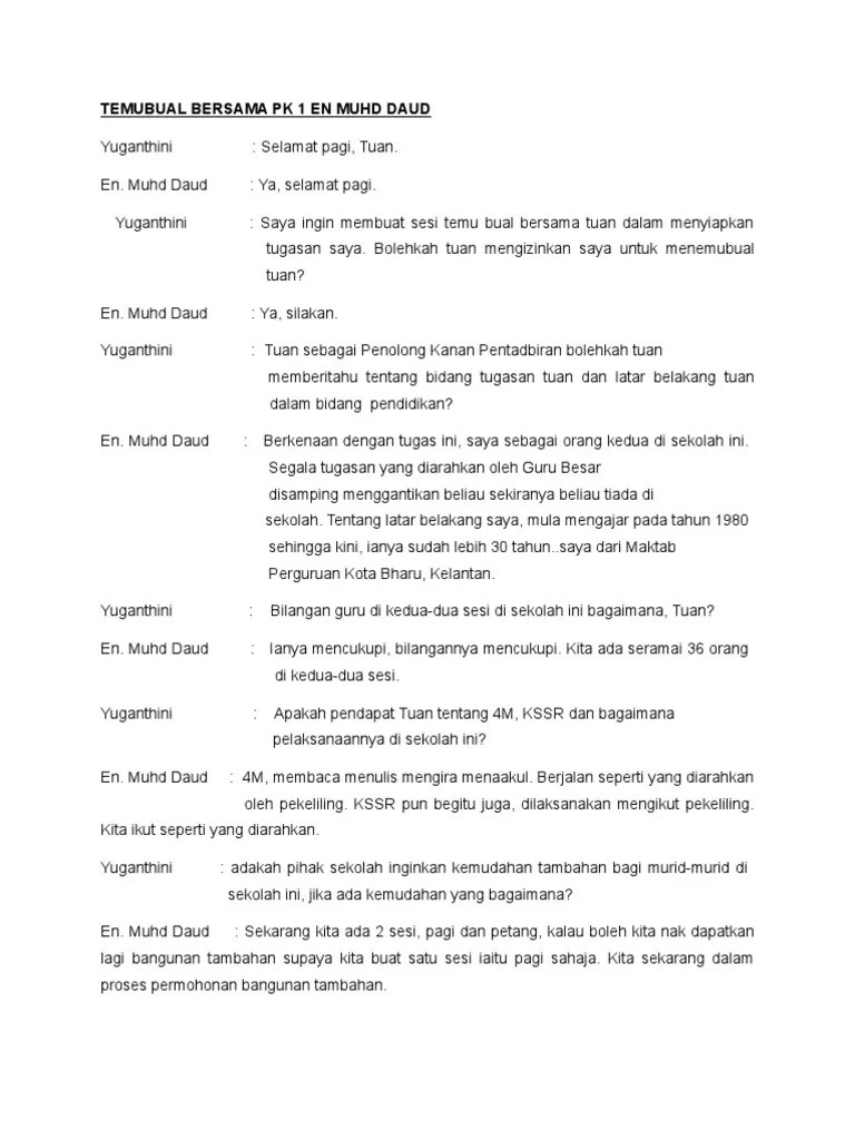 Contoh transkrip temubual ukm contoh transkrip temubual kajian . Search q contoh transkrip temubual kajian kualitatif tbm isch. Sie haben fragen, anregungen oder wünsche? Transkrip temu bual s : Transkrip temubual bersama murid kamarul kuala terengganu.